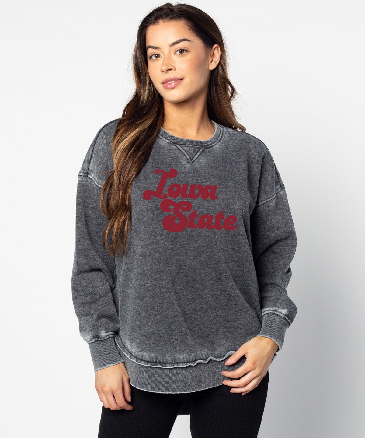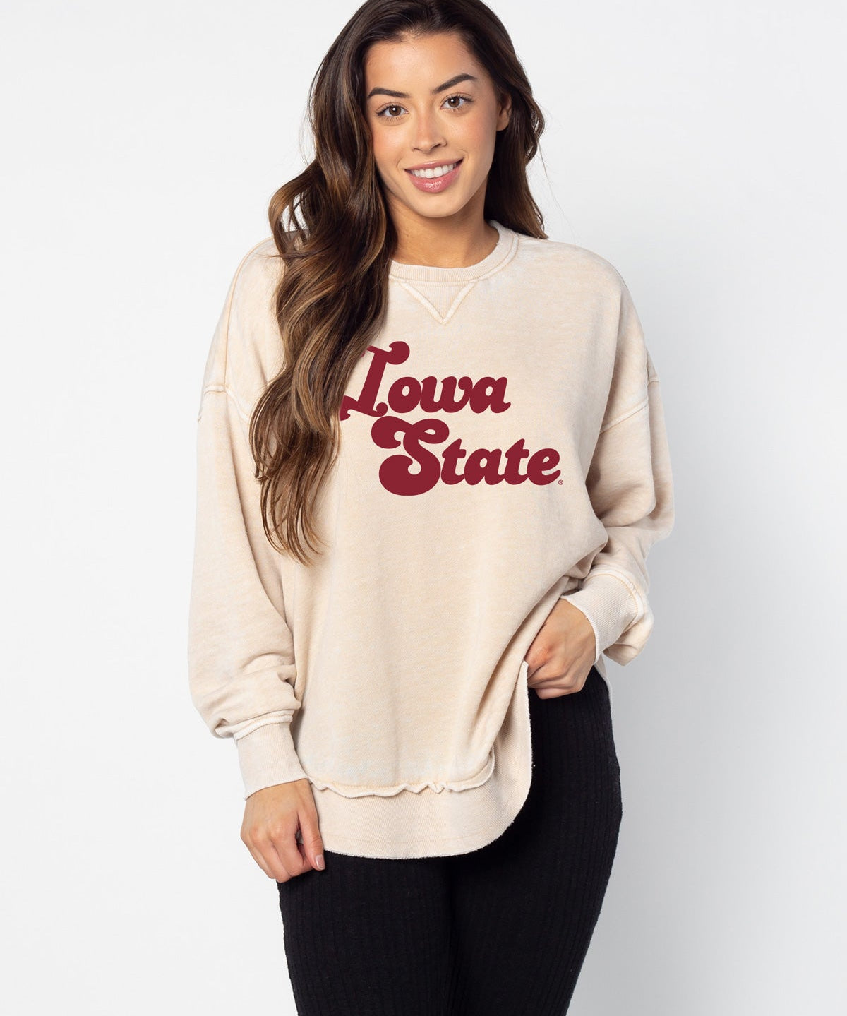 Iowa State Cyclones Unisex Cardinal Oversized, slouchy Mineral wash T-Shirt with Extreme dropped shoulders, oversized sleeves and lived-in look and feel