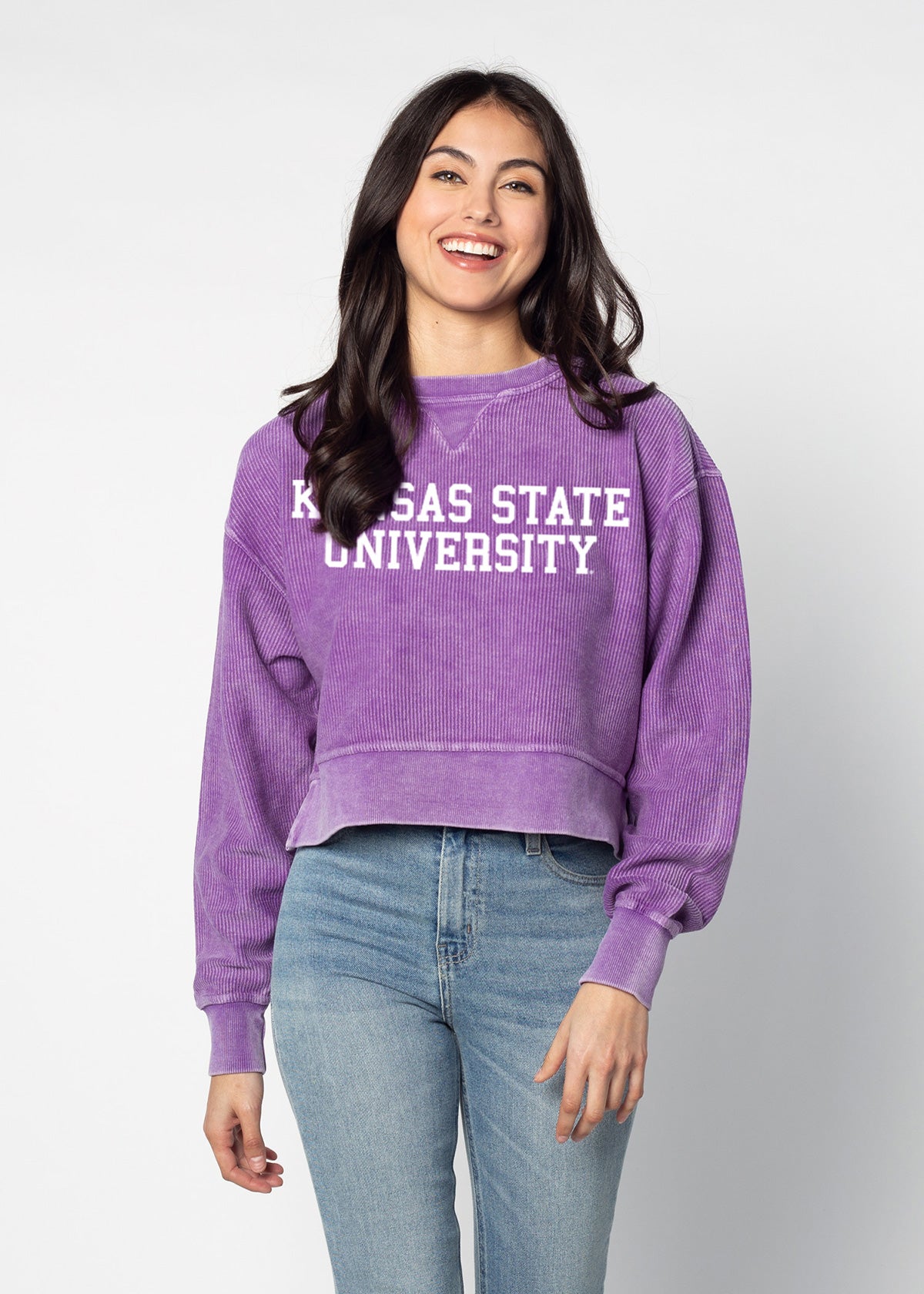 An update to our best seller! Kansas State Wildcats oversized sweatshirt with a super soft vintage wash corded fabric. Waist-length, feminine silhouette features a ribbed neckline, cuff and hemline.