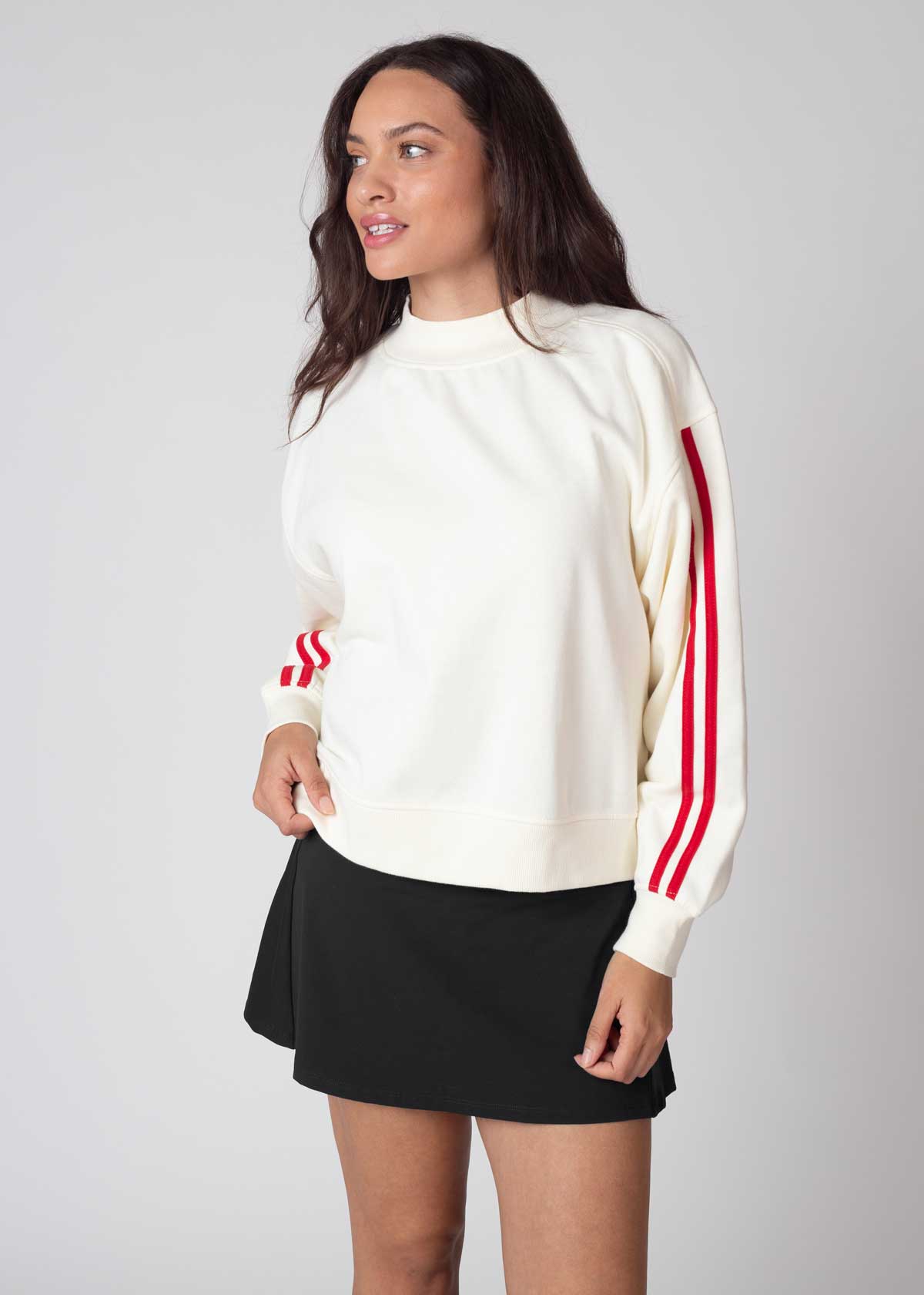 Meet our Varsity Mock-neck a stylish, sporty top featuring a mock-neck design, combining comfort and a modern, athletic look. Perfect for layering or wearing on its own, it offers a casual yet polished vibe, ideal for both active and everyday wear.