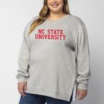 A classic North Carolina State Wolfpack crew neck fleece in a flattering tunic length that provides perfect coverage. Made for multitasking, the relaxed silhouette looks good in a variety of settings and pairs well with beloved jeans or leggings for extra comfort. Made from a heathered fleece with an extra smooth finish. Features easy-moving side slits finished with white twill tape