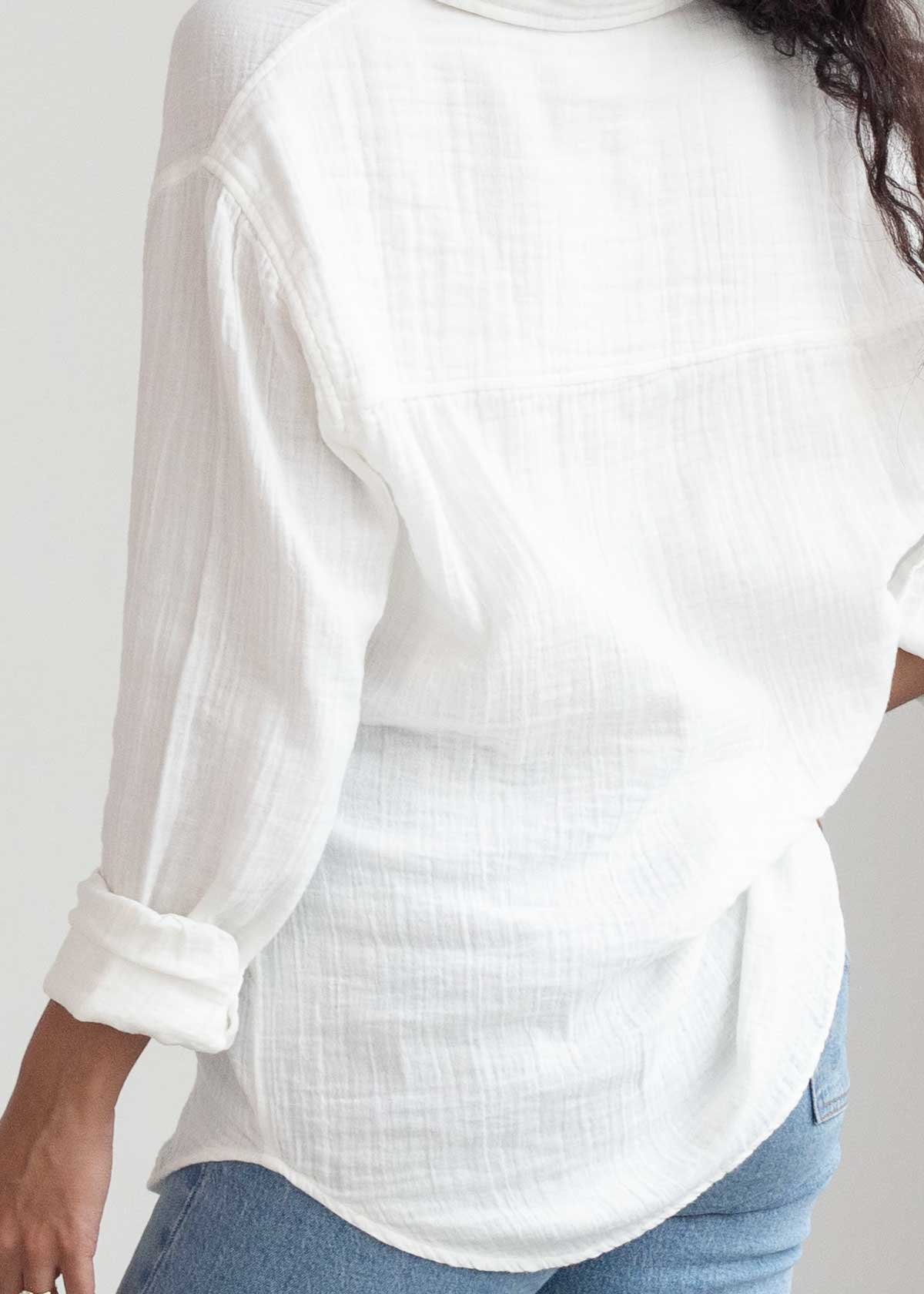 Meet our Leisure Long Sleeve Button-Up - your go-to for easy style and relaxation! Created with a breathable gauze woven fabric of 100% cotton, it's suitable for every moment, whether you're at work or enjoying your free time. Featuring buttons on the left side and a two-layered cuff and collar, each shirt ensures durability and timeless elegance.