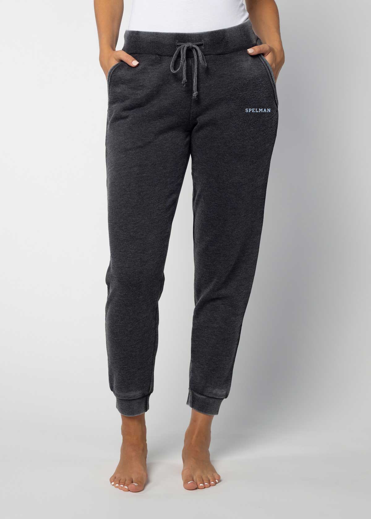 Meet the Spelman Charcoal Campus Sweatpants. Buttery soft to the touch finished with a burnout wash treatment that gives it a lived-in look. Features ribbed waistband with a drawstring, side pockets and tapered legs with rib cuffs. Pairs perfectly with our 449, 480, 482 and 450 burnout fleece pullovers.