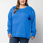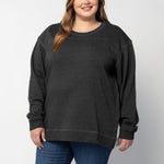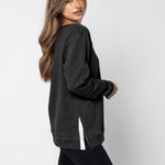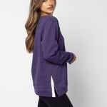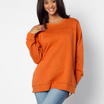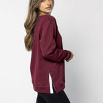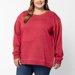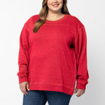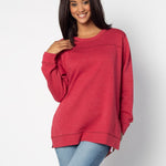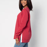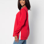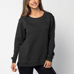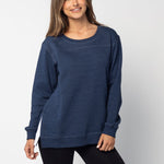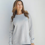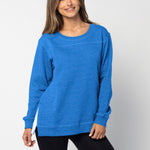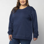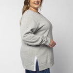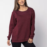 A classic crew neck fleece in a flattering tunic length that provides perfect coverage. Made for multitasking, the relaxed silhouette looks good in a variety of settings and pairs well with beloved jeans or leggings for extra comfort. Made from a heathered fleece with an extra smooth finish. Features easy-moving side slits finished with white twill tape