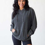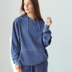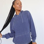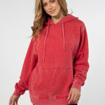 Unisex fleece hoodie with kangaroo front pocket. Ribbed cuffs and hem. Dropped shoulders and relaxed bottom hemline. Burnout wash process provides a unique, washed and worn look and a comfortable feel.