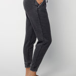 Slim fit joggers feature a drawstring waistband, side pockets and tapered legs with rub cuffs. Pairs perfectly with our burnout fleece tops for a trendy matching set.