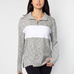 Designed for in-between-season days. The inset white chest stripe adds some vintage vibes. It features a brushed nickel zipper collar, long ribbed cuffs with thumbholes and wide ribbed hemline with side slits. It only gets softer with wear!