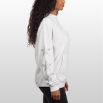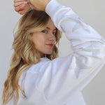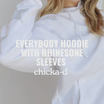 Our staple boyfriend hoodie meets 90s glam. The Everybody Hoodie now has rhinestone stars on the sleeves. It features a kangaroo front pocket, ribbed cuffs, a hem, and dropped shoulders. The burnout wash process provides a unique worn-out look and a comfortable feel.