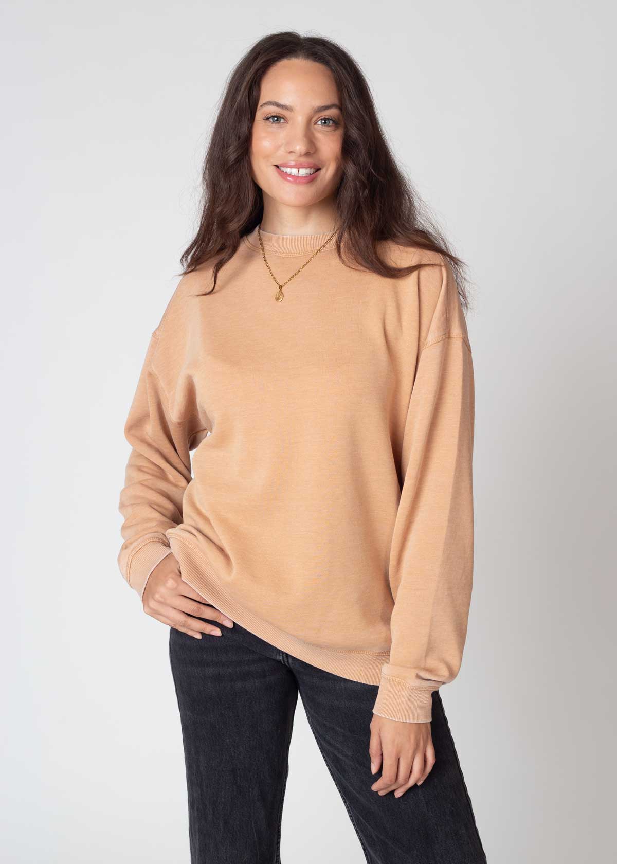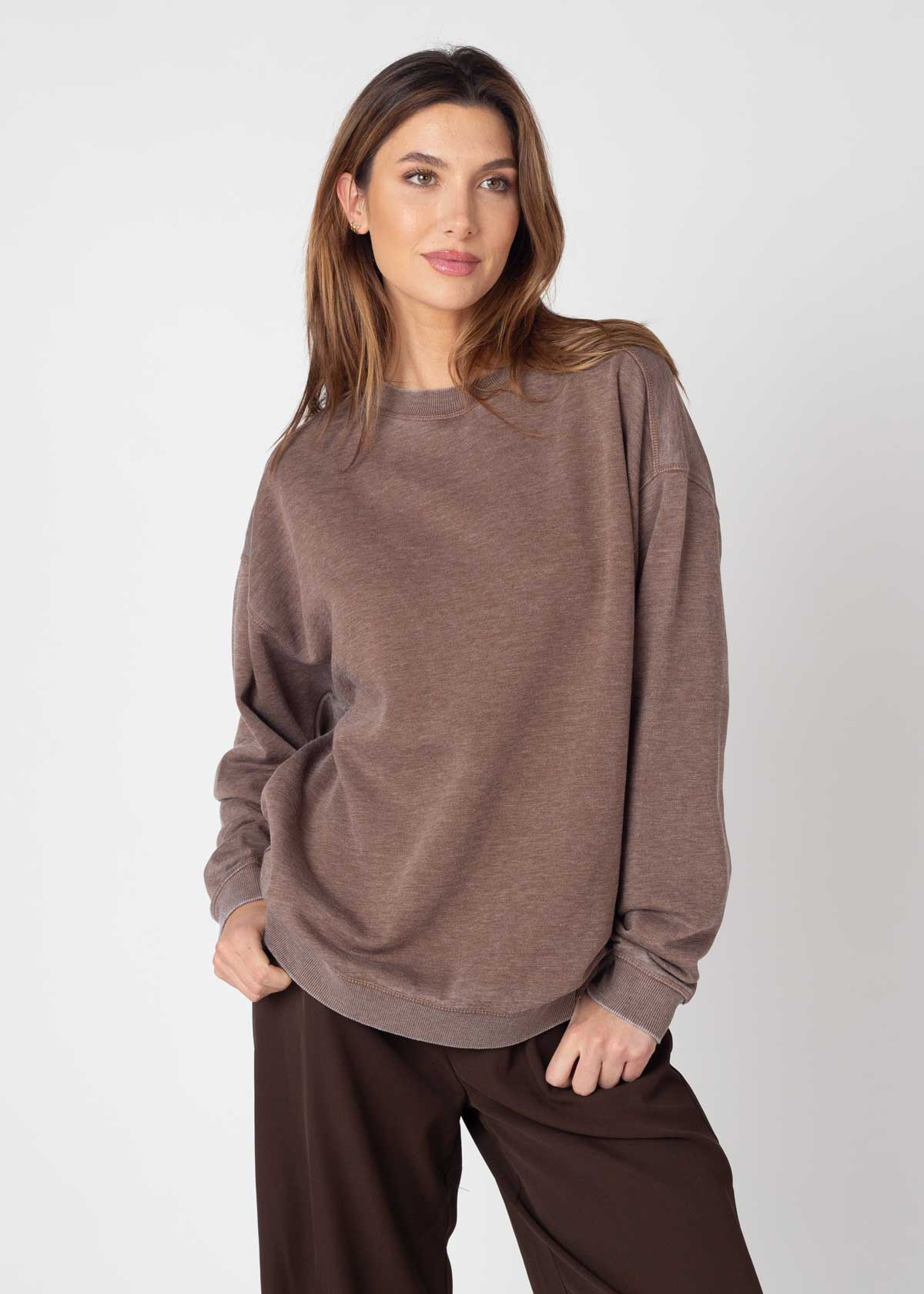 The softest, coziest fleece you'll ever wear. Buttery soft to the touch and burnout wash treatment for an edgy take on this classic silhouette. Unisex oversized fleece sweatshirt with ribbed neckline, cuffs, hem. Dropped shoulders and relaxed bottom hemline.