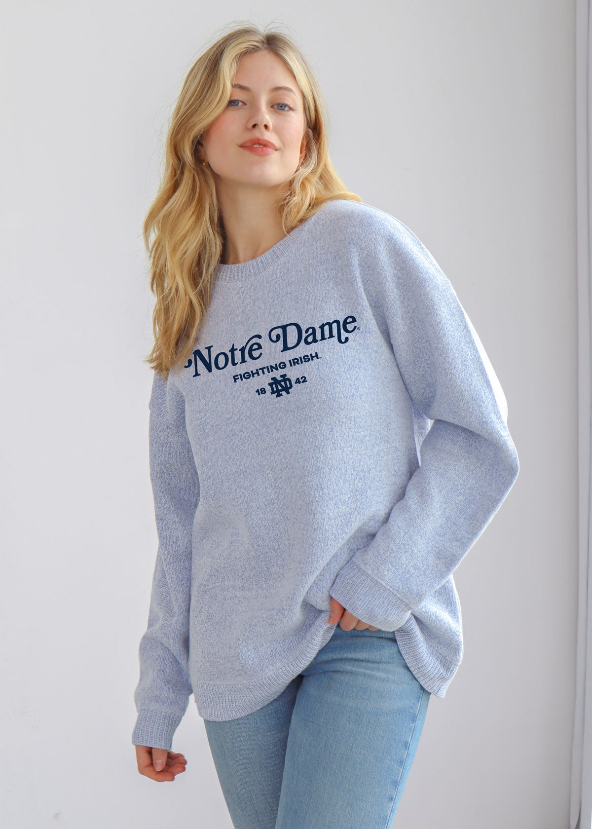 Meet the Notre Dame Alumni Warm Up Crew Sweatshirt. The coolest take in a forever classic! Featured in our traditional crew oversized sweatshirt fit. Made from yarn dyed fleece with a textured heather look on the outside and a brushed, buttery soft inside. It will keep you warm and confident for any occasion.