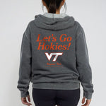 Unisex Virginia Tech Hokies fleece hoodie with kangaroo front pocket now with a graphic on the front and back. Ribbed cuffs and hem. Dropped shoulders and relaxed bottom hemline. Burnout wash process provides a unique, washed and worn look and a comfortable feel.