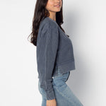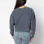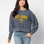 An update to our best seller! West Virginia Mountaineers oversized sweatshirt with a super soft vintage wash corded fabric. Shorter cropped, feminine silhouette features a ribbed neckline, cuff and hemline.