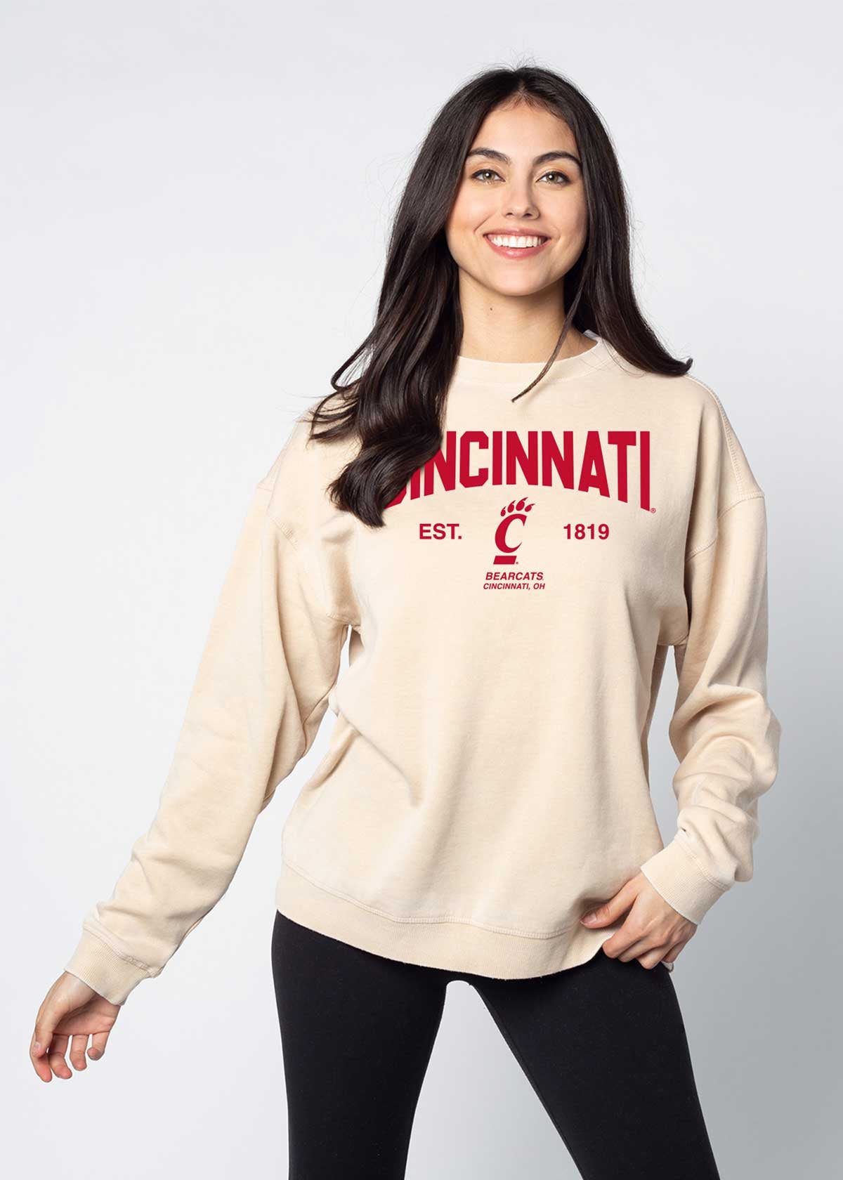 Meet the Cincinnati Gameday Burnout Campus Pullover. The softest, coziest fleece you'll ever wear. Buttery soft to the touch and burnout wash treatment for an edgy take on this classic silhouette. Unisex oversized fleece sweatshirt with ribbed neckline, cuffs, hem. Dropped shoulders and relaxed bottom hemline.