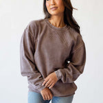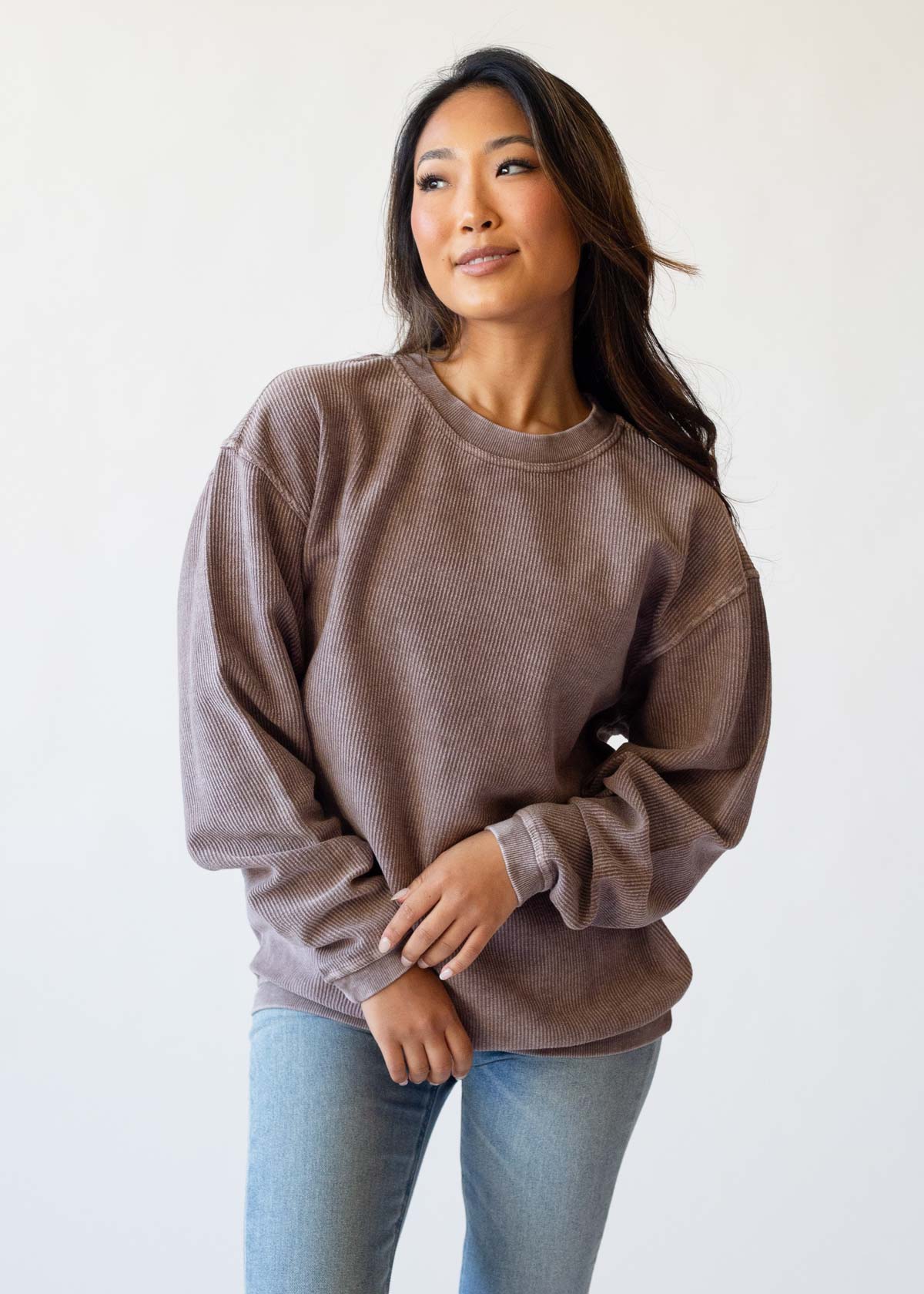Our best seller! Oversized sweatshirt with a super soft, vintage wash corded fabric. Features a ribbed crew neckline, cuffs, and hemline.
