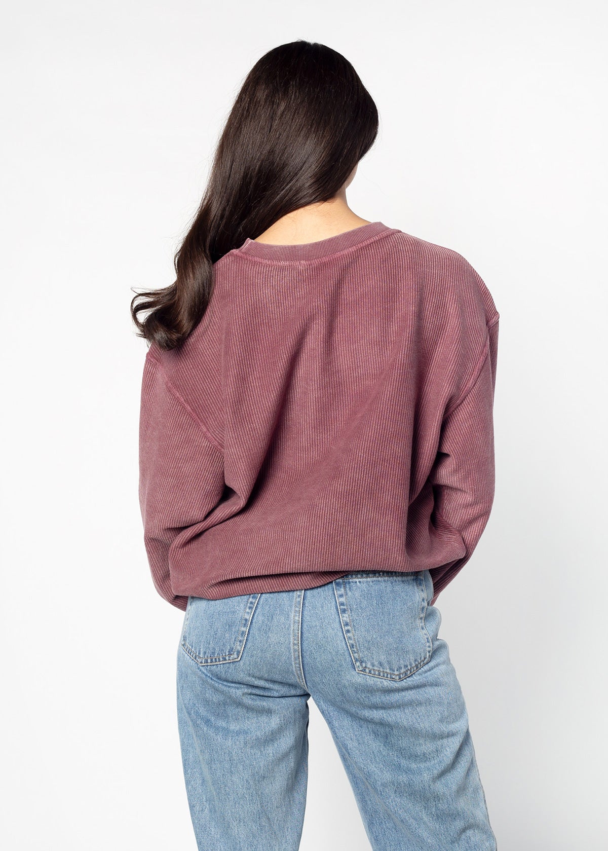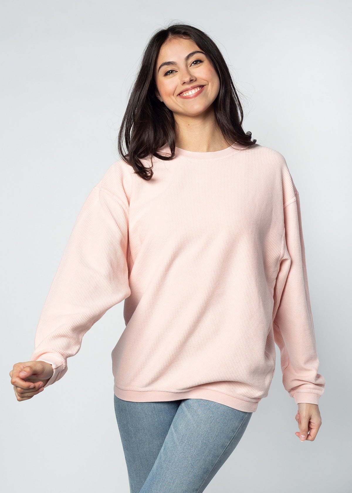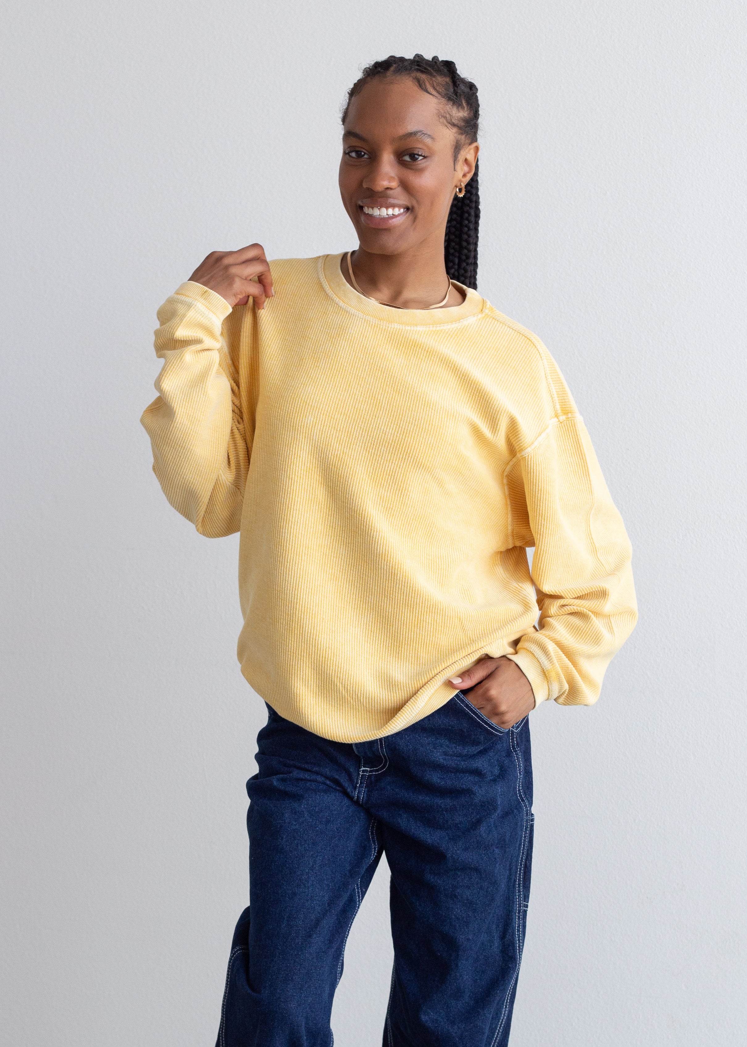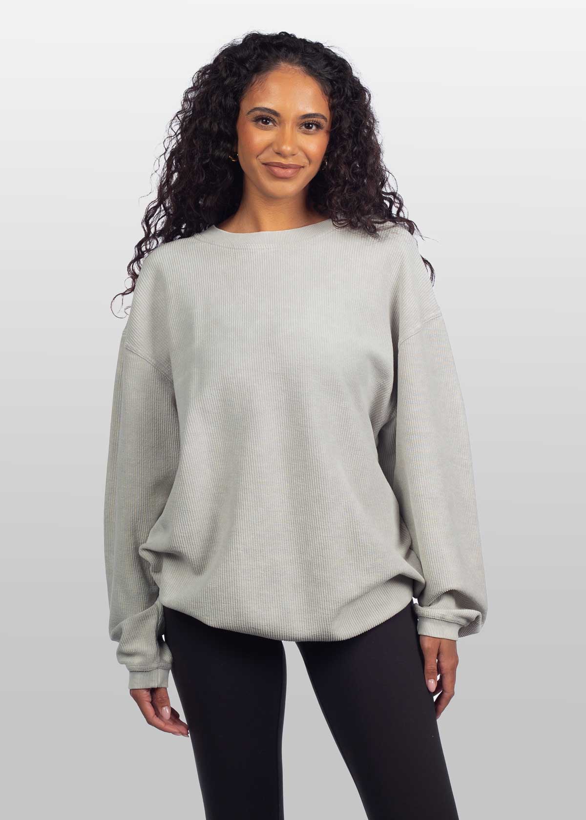Our best seller! Oversized sweatshirt with a super soft, vintage wash corded fabric. Features a ribbed crew neckline, cuffs, and hemline.