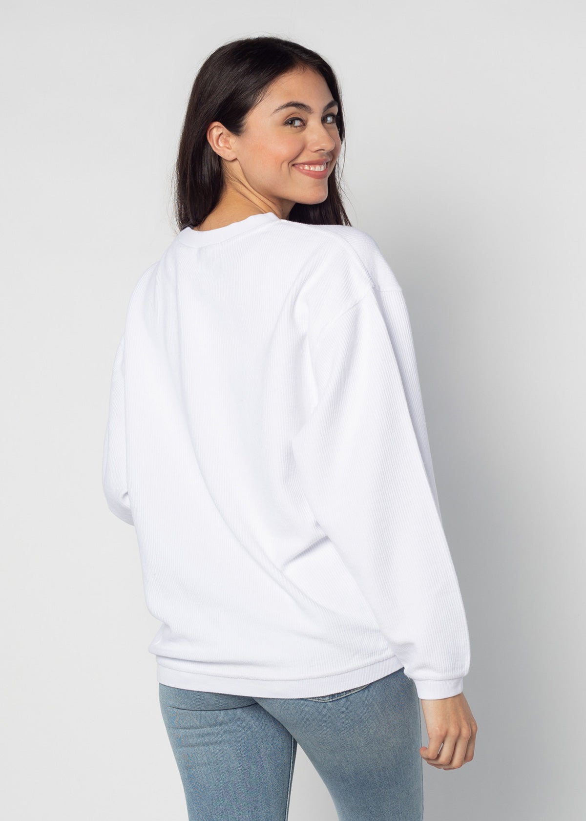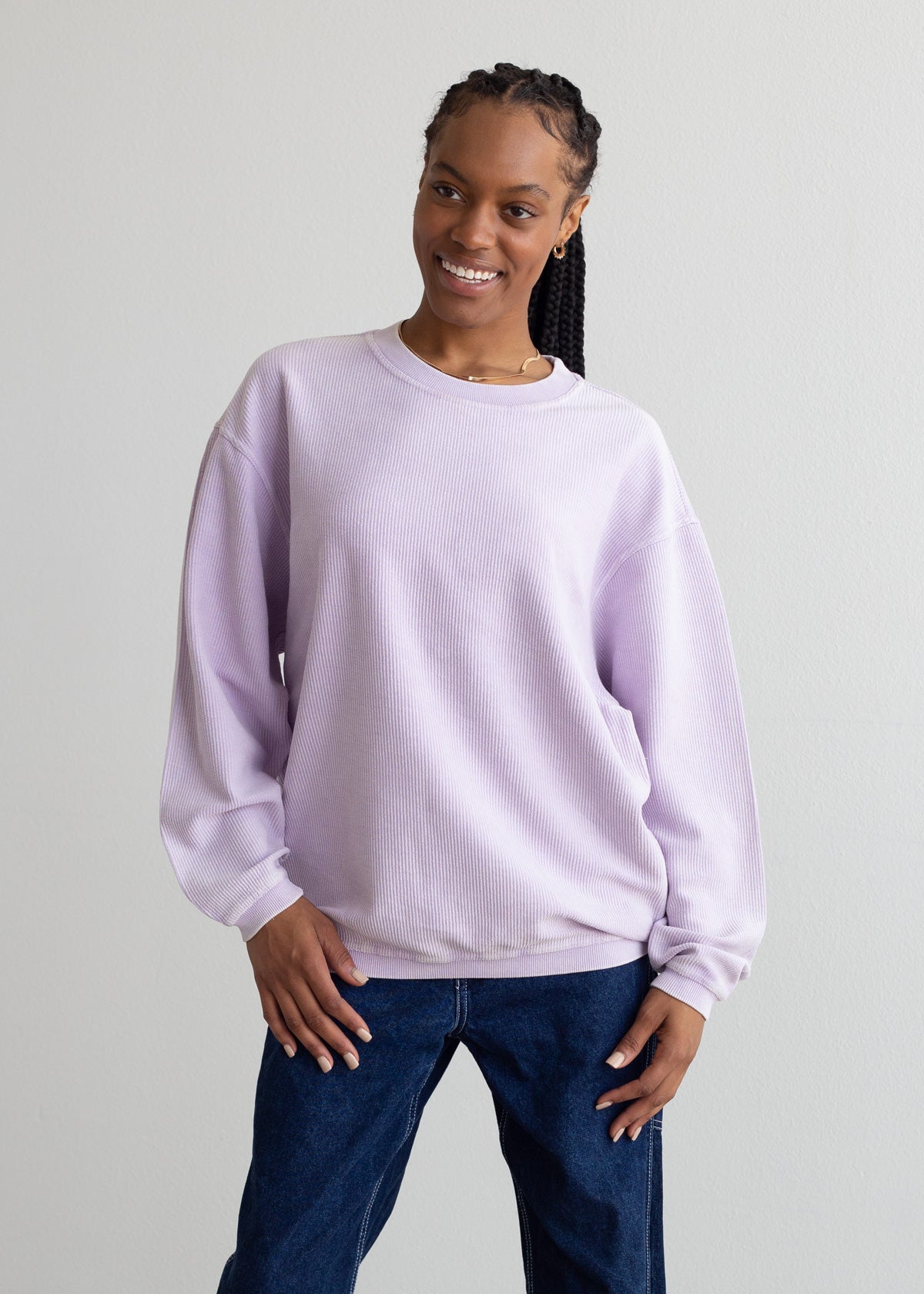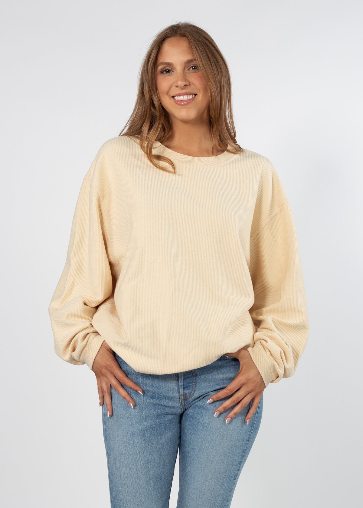Our best seller! Oversized sweatshirt with a super soft, vintage wash corded fabric. Features a ribbed crew neckline, cuffs, and hemline.