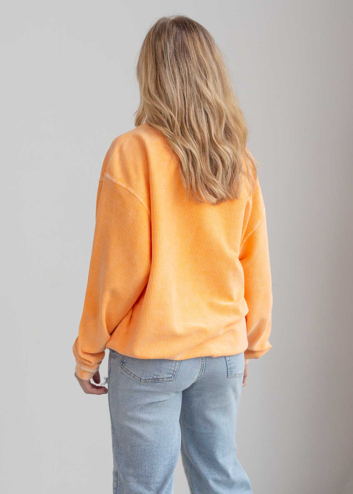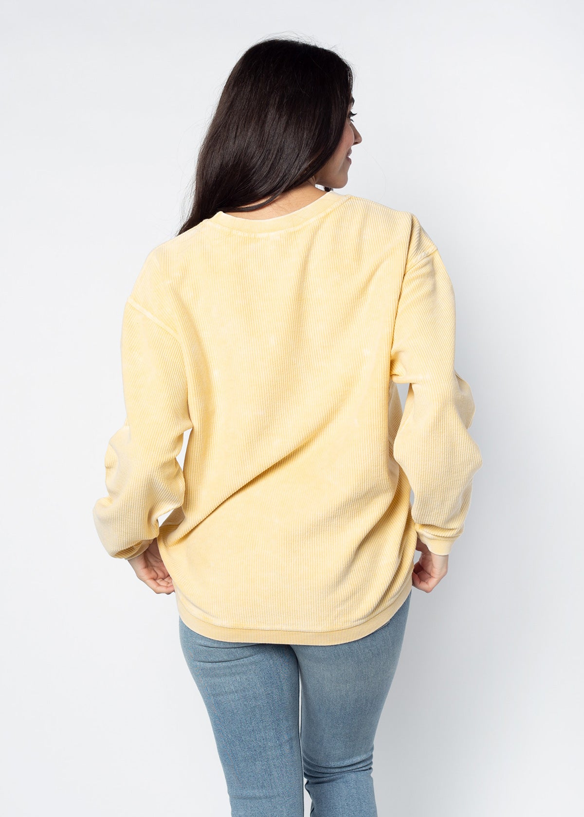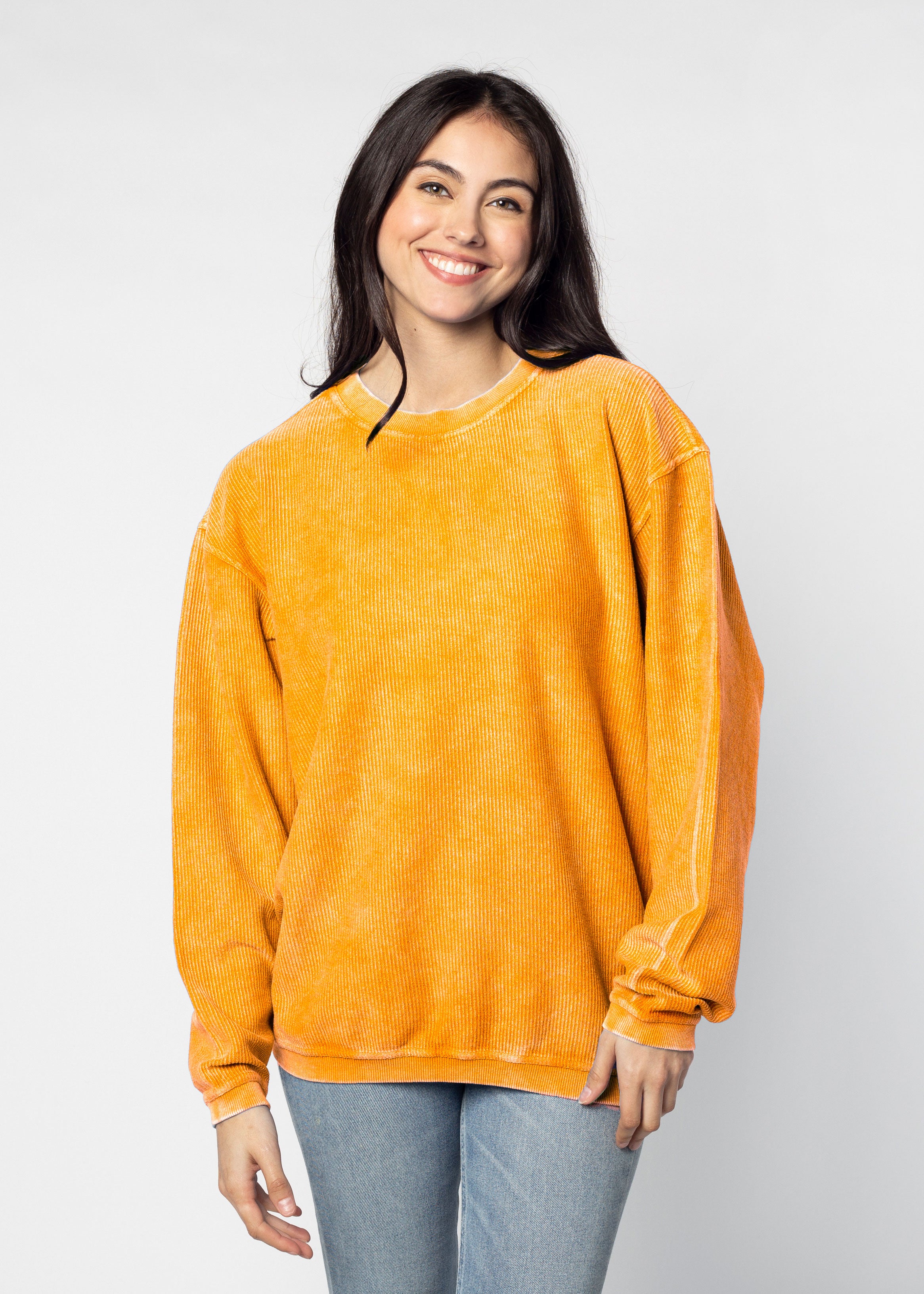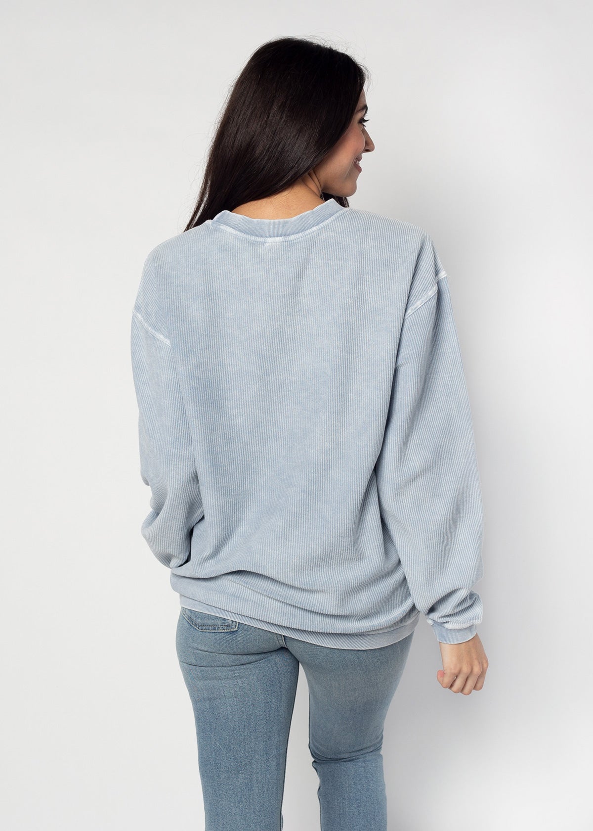 Our best seller! Oversized sweatshirt with a super soft, vintage wash corded fabric. Features a ribbed crew neckline, cuffs, and hemline.