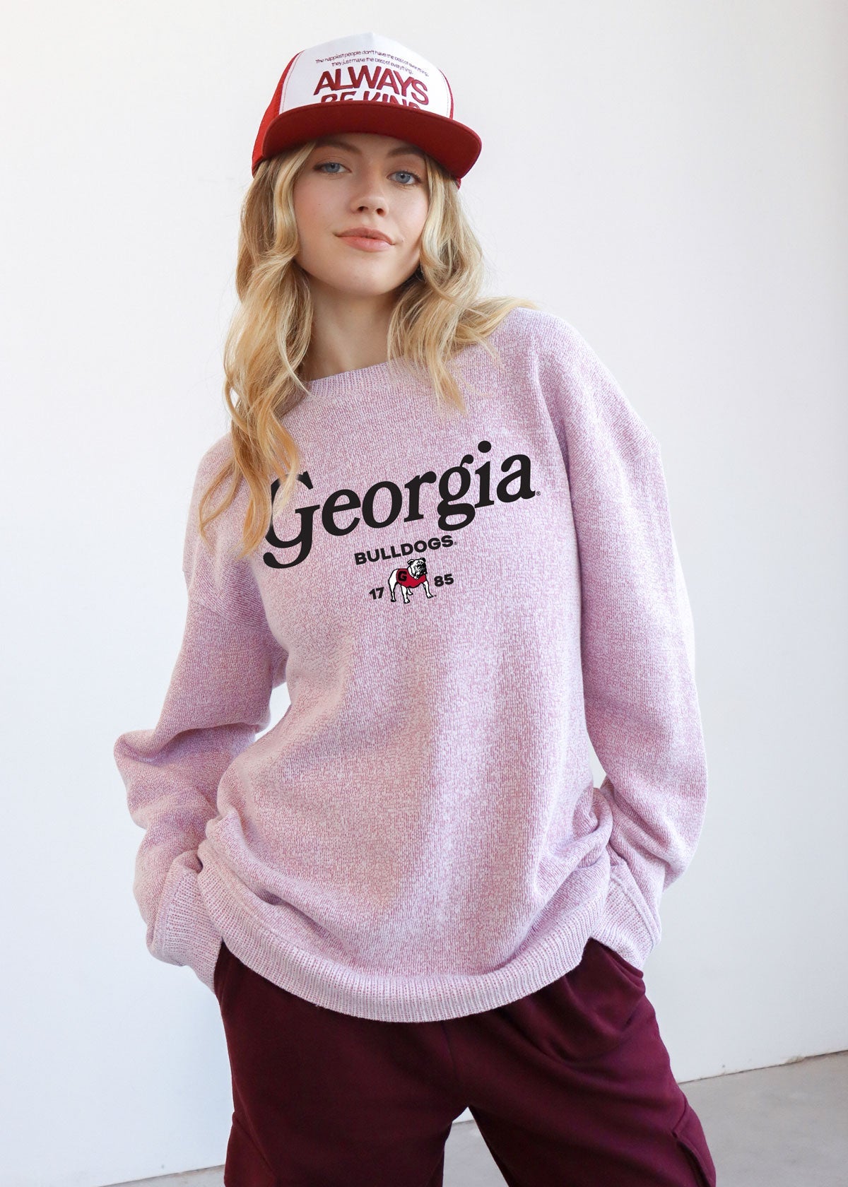 The coolest take in a forever Georgia Bulldogs classic! Featured in our traditional crew oversized sweatshirt fit. Made from yarn dyed fleece with a textured heather look on the outside and a brushed, buttery soft inside. It will keep you warm and confident for any occasion.