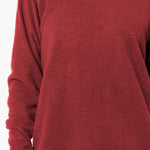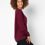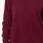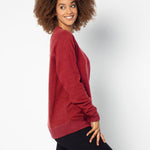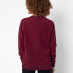 Maroon womens crew sweatshirt with ribbed crew neck, raglan sleeves and hem.