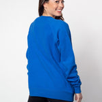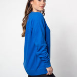 Royal blue womens crew sweatshirt with ribbed crew neck, raglan sleeves and hem.
