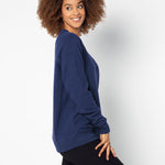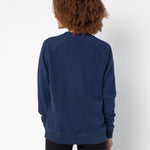 Navy womens crew sweatshirt with ribbed crew neck, raglan sleeves and hem.