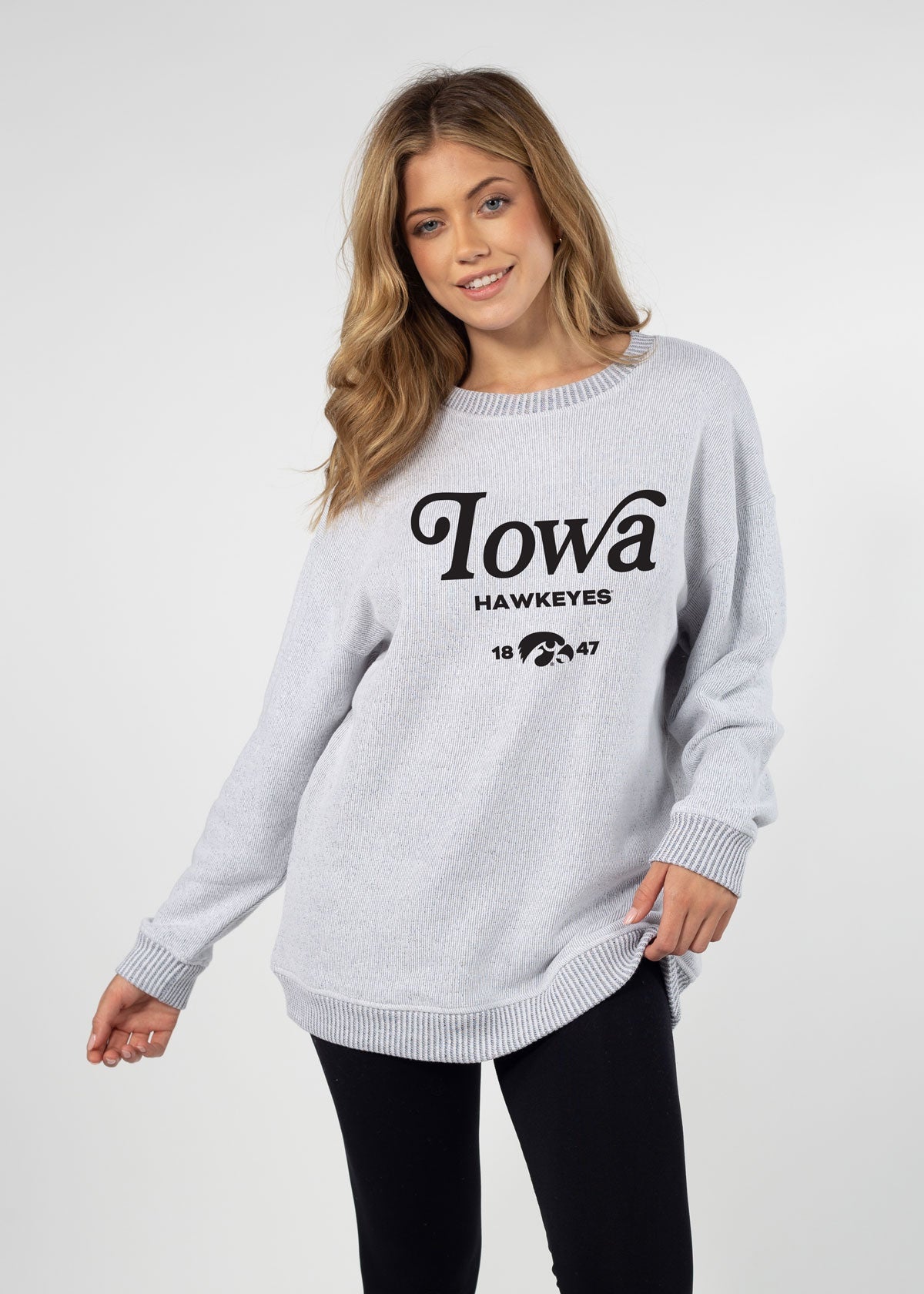 The coolest take in a forever Iowa Hawkeyes classic! Featured in our traditional crew oversized sweatshirt fit. Made from yarn dyed fleece with a textured heather look on the outside and a brushed, buttery soft inside. It will keep you warm and confident for any occasion.