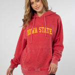 Unisex Iowa State Cyclones fleece hoodie with kangaroo front pocket. Ribbed cuffs and hem. Dropped shoulders and relaxed bottom hemline. Burnout wash process provides a unique, washed and worn look and a comfortable feel.