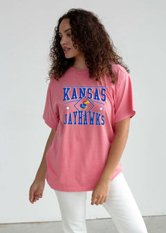 The softest, coziest fleece you'll ever wear — now officially licensed for the Kansas Jayhawks. Buttery soft to the touch, with a burnout wash treatment for an edgy take on this classic silhouette. Unisex oversized fleece sweatshirt with ribbed neckline, cuffs, and hem. Dropped shoulders and a relaxed bottom hemline.