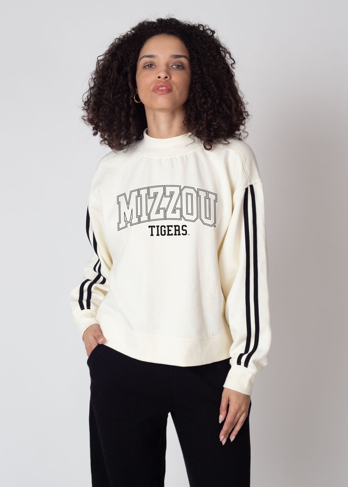 Meet our Missouri Tigers Varsity Mock-neck a stylish, sporty top featuring a mock-neck design, combining comfort and a modern, athletic look. Perfect for layering or wearing on its own, it offers a casual yet polished vibe, ideal for both active and everyday wear.