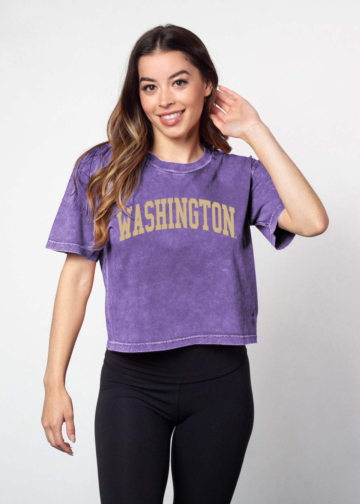 Your new go-to Washington Huskies waist-length tee in a relaxed, boxy silhouette. The vintage inspired mineral wash adds another excuse to get this tee asap.